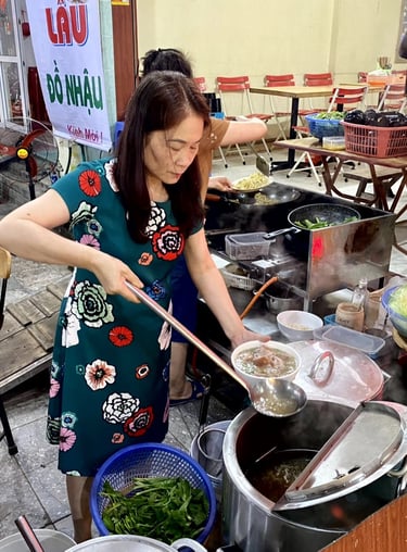 After finishing my second can of Saigon beer and as darkness fully set in, I went for an evening stroll in Cao Bang. Unlike a couple of days ago, on Saturday, the main street was now bustling with scooters and other vehicles. However, parallel to the main street, a beautifully arranged pedestrian promenade with restaurants and cafes was less hectic. There, I enjoyed a bowl of Pho Vit for 35K VND (1.40 EUR), cooled off with a can of Ha Noi beer for 20K VND (0.80 EUR), and repeated the foot massage at the same place as on Saturday. I highly recommend it, especially after a day's ride on a motorbike.