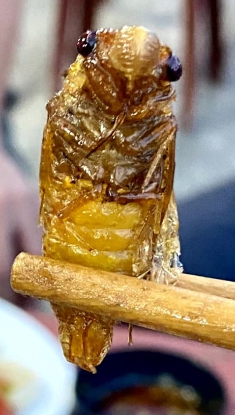 My evening in Son La began at Quan Bia Xanh restaurant. It was hot, and I thought a few glasses of Hoi beer, costing just 10K VND (0.40 EUR) each, would be refreshing. Three men at a nearby table invited me to join them after a minute of curious glances. We drank several beers, tried various dishes, including fried cicadas with bamboo shavings and a tangy spicy sauce, and chatted about life, international friendship, and Vietnam, a country I love exploring, through Google Translate. I don’t remember their names, but they were teachers (math, physics, and PE), extremely friendly and pleasant. After three hours, they insisted on paying the entire bill, brushing off my protests with repeated ‘no no, you ma gest!’